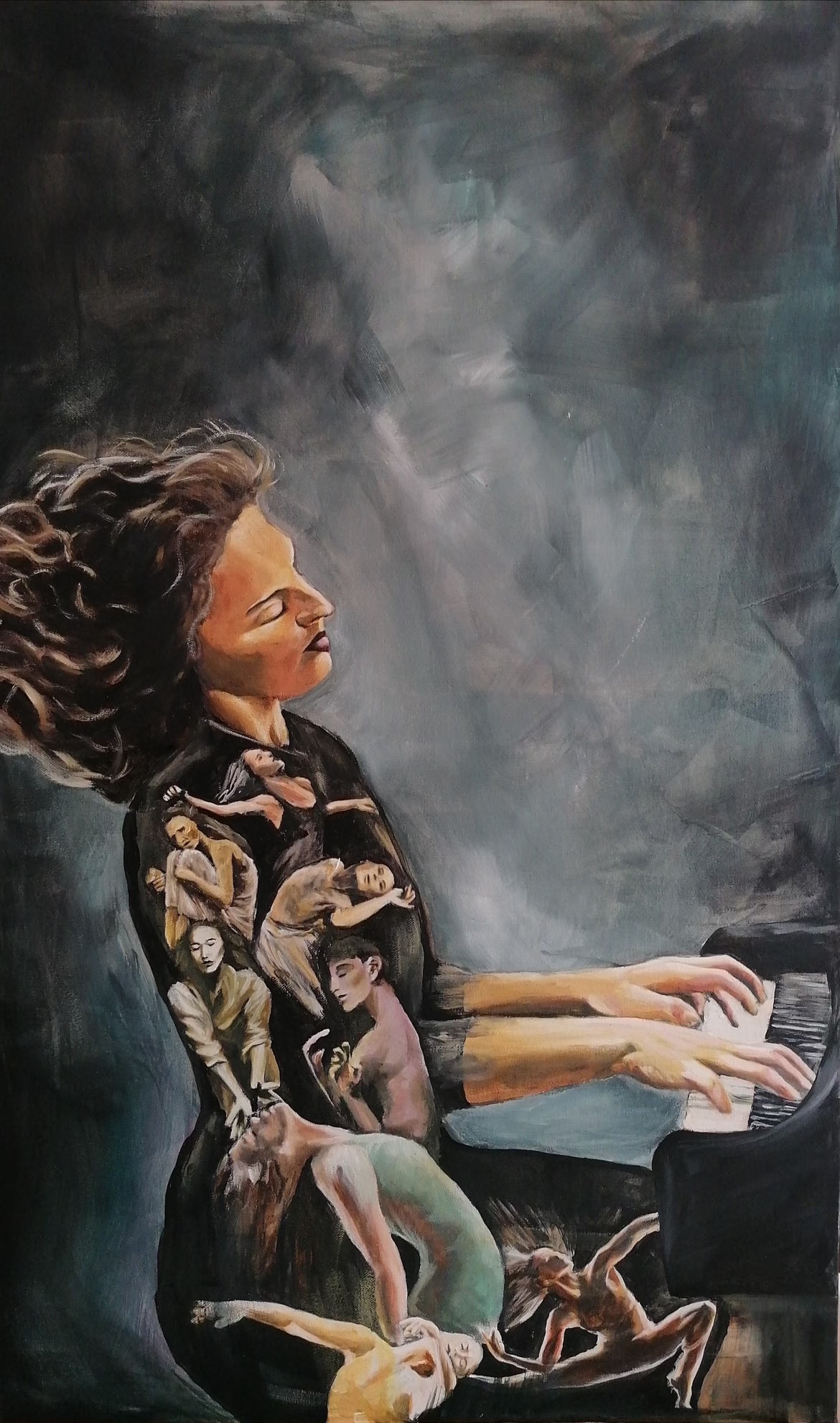 So real wie Träume – meine farbkräftigen und figurativ-surrealen Gemälde sind eine Kombination aus meinen medizinischen Erfahrungen als Ärztin und meiner Leidenschaft für Tanz und Theater. Sie zeigen eine eingehende Auseinandersetzung des Menschen mit sich selbst und seiner Umgebung. Klassische zeitlose Motive und neuartige surreale Elemente greifen ineinander und machen die Gleichzeitigkeit von Gegensätzlichem sichtbar. Zwischen Traum und Realität laden sie dazu ein, sich selbst mit Themen wie Zugehörigkeit, Identität, Authentizität und Freiheit auseinanderzusetzen.